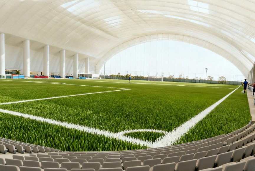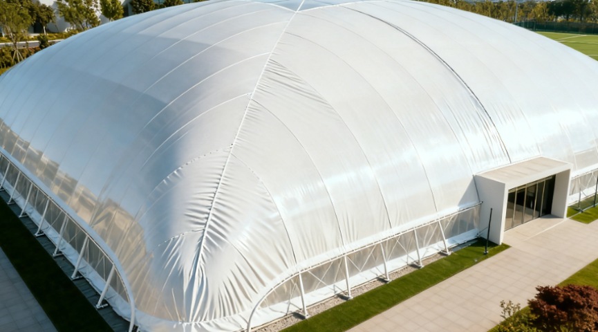 亚奥气膜体育馆最显著的优势在于大跨度无柱空间设计。采用高强度PVDF/PTFE膜材与智能恒压控制系统,可实现单跨50-150米、面积数千平方米的无柱空间构建,无论是标准足球场、游泳馆,还是羽毛球馆、多功能运动馆,都能灵活适配。无柱设计最大化利用场地空间,避免传统场馆立柱对运动视野和活动范围的限制,让运动体验更顺畅,同时也为场馆多功能运营(如赛事举办、文艺演出、大型活动)提供更多可能。